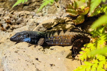 Die vierte und wahrscheinlich die interessanteste Art auf La Gomera ist Gallotia bravoana (Hutterer, 1985). Diese Art der Kanareneidechse überrascht mit viel weiß im Schuppenkleid.