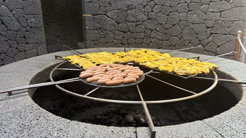 Im Timanfaya Nationalpark wird die vulkanische Aktivität der Insel greifbar. Besonders spektakulär ist das Restaurant El Diablo, wo Fleisch über vulkanischer Hitze gegrillt wird.